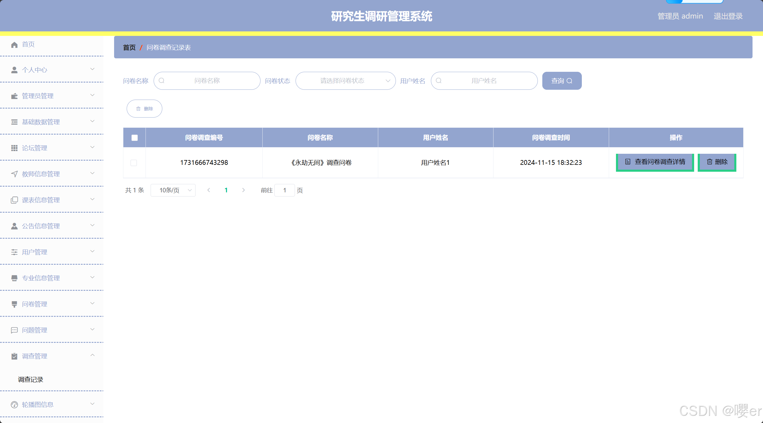 问卷调查:学生可以参与和提交调查问卷,管理员可以创建和管理调研内容。