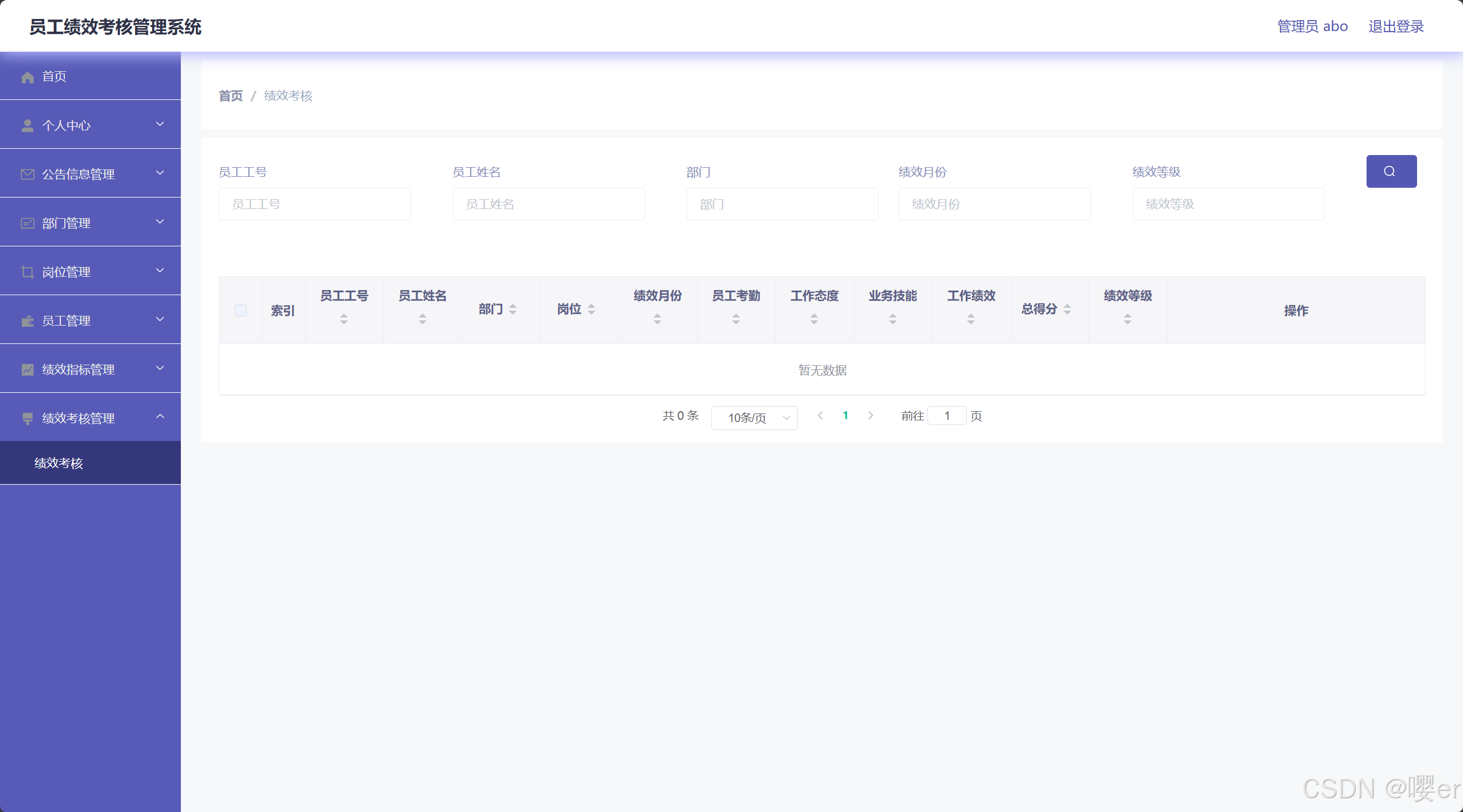 - 管理员端功能:公告、部门、岗位、绩效等功能模块操作便捷,逻辑清晰。