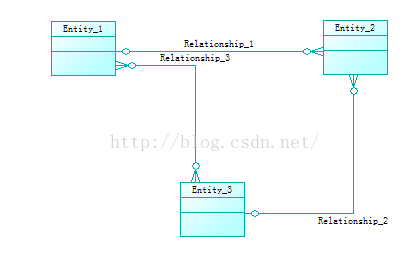 一共四张表,其中表2中有1和3的主键引用(可以设计为外键),1和3有一张桥表4进行多对多关联。