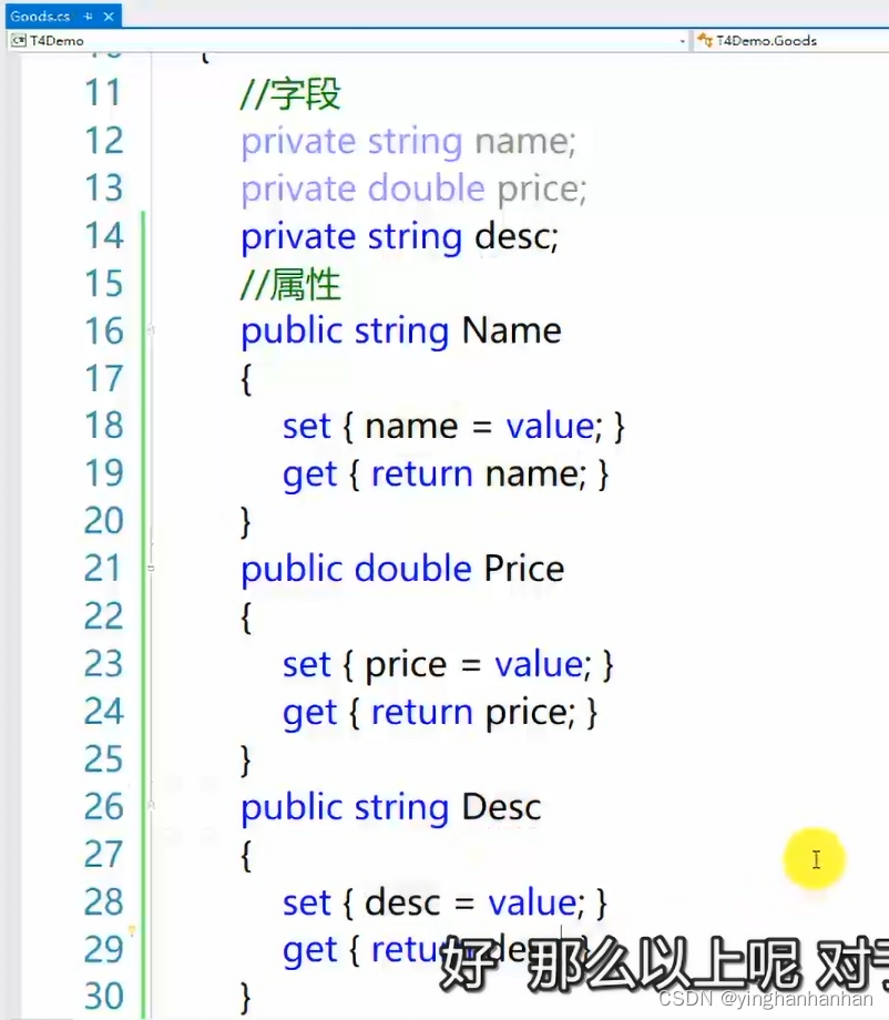 2.2定义属性提供get(访问),set(赋值)访问器对字段进行访问