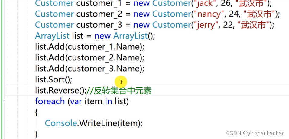 6.2.1添加元素:Add添加到ArrayList结尾处,Insert添加到ArrayList的指定索引处:list.Insert(索引位置,元素);