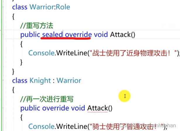 Sealed修饰方法时只能与override一起使用,防止重写的方法再次被重写