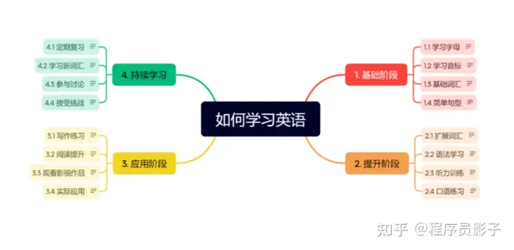 提示词:请使用markdown格式帮我制作一份思维导图,主题是如何学习英语。