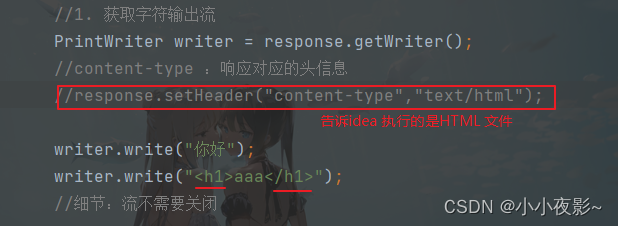 //细节:流不需要关闭 原因:伴随着运行 response调用完会自动销毁 ,流也就不需要关闭