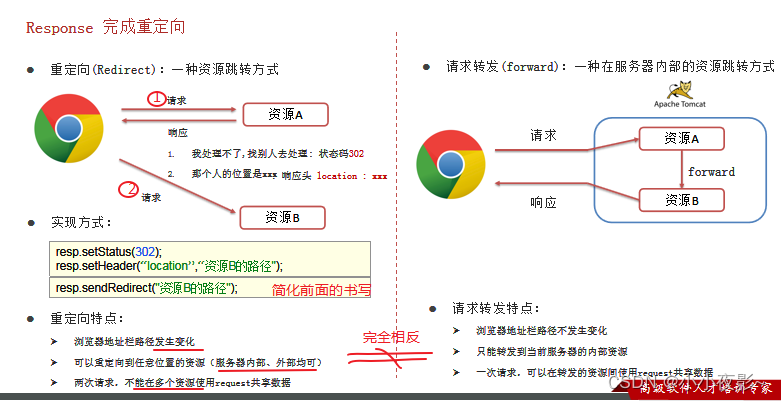 - 可以重定向到任意位置的资源(服务器内部、外部均可)
