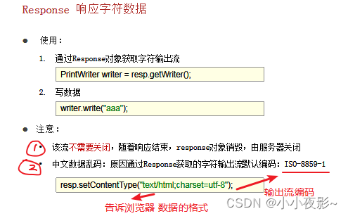 - 该流不需要关闭,随着响应结束,response对象销毁,由服务器关闭