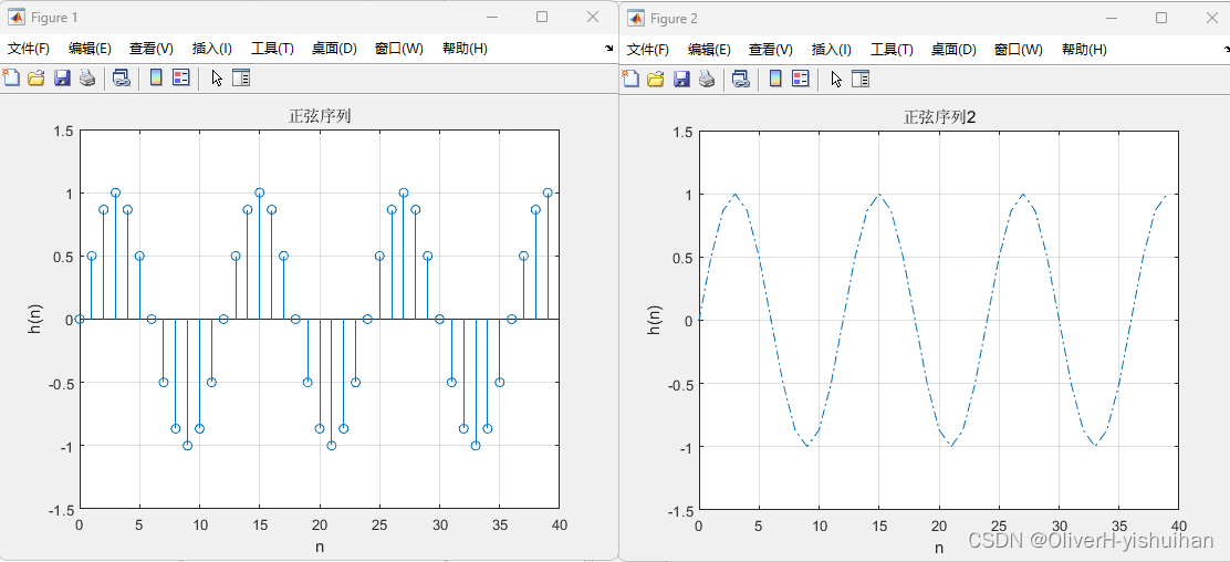 % 正弦序列x(n)=sin(wn),式中w称为正弦序列的数字域频率,单位为弧度,