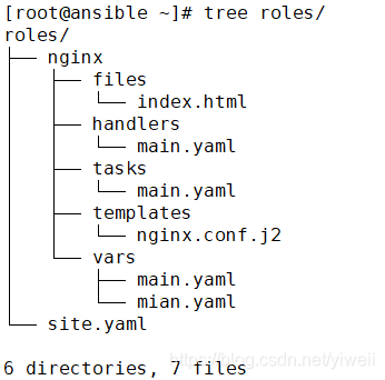 mkdir roles/nginx/{files,handlers,tasks,templates,vars} -p