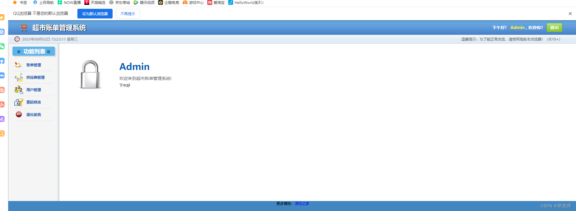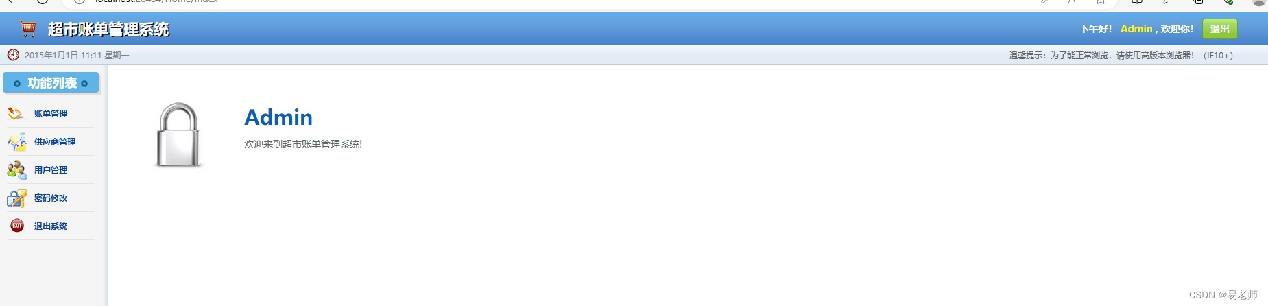 <p>欢迎来到超市账单管理系统!</p>