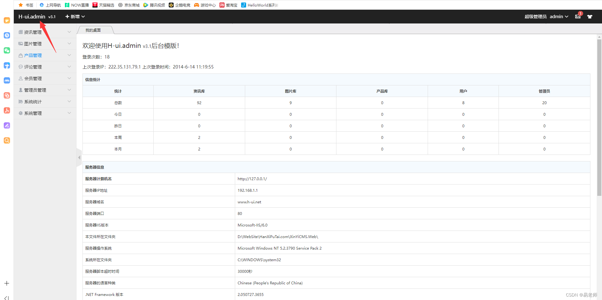 可以测试一下,默认进入登录页面: