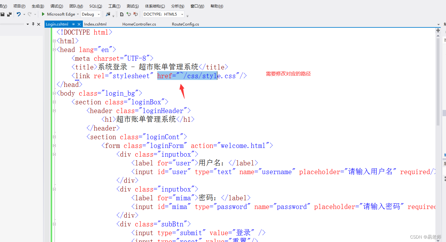 最后按照Login的方法,修改Index的内容: