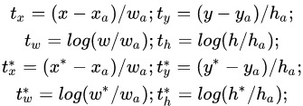 对于每个 anchor, gt_label要么为 1(前景),要么为 0(背景),而 gt_loc则是由 4个位置参数 (tx,ty,tw,th)组成,这样比直接回归座标更好。