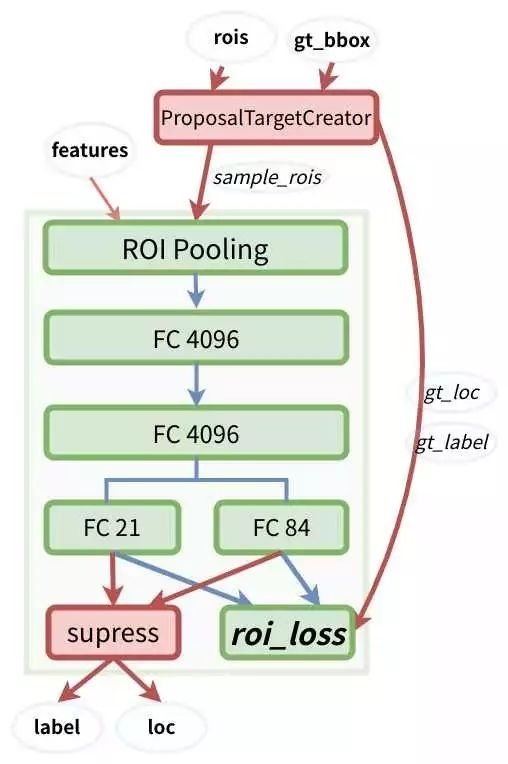 ProposalTargetCreator:负责在训练 RoIHead/Fast R-CNN的时候,从 RoIs选择一部分 (比如 128个)用以训练。同时给定训练目标,返回(sample_RoI,gt_RoI_loc,gt_RoI_label)