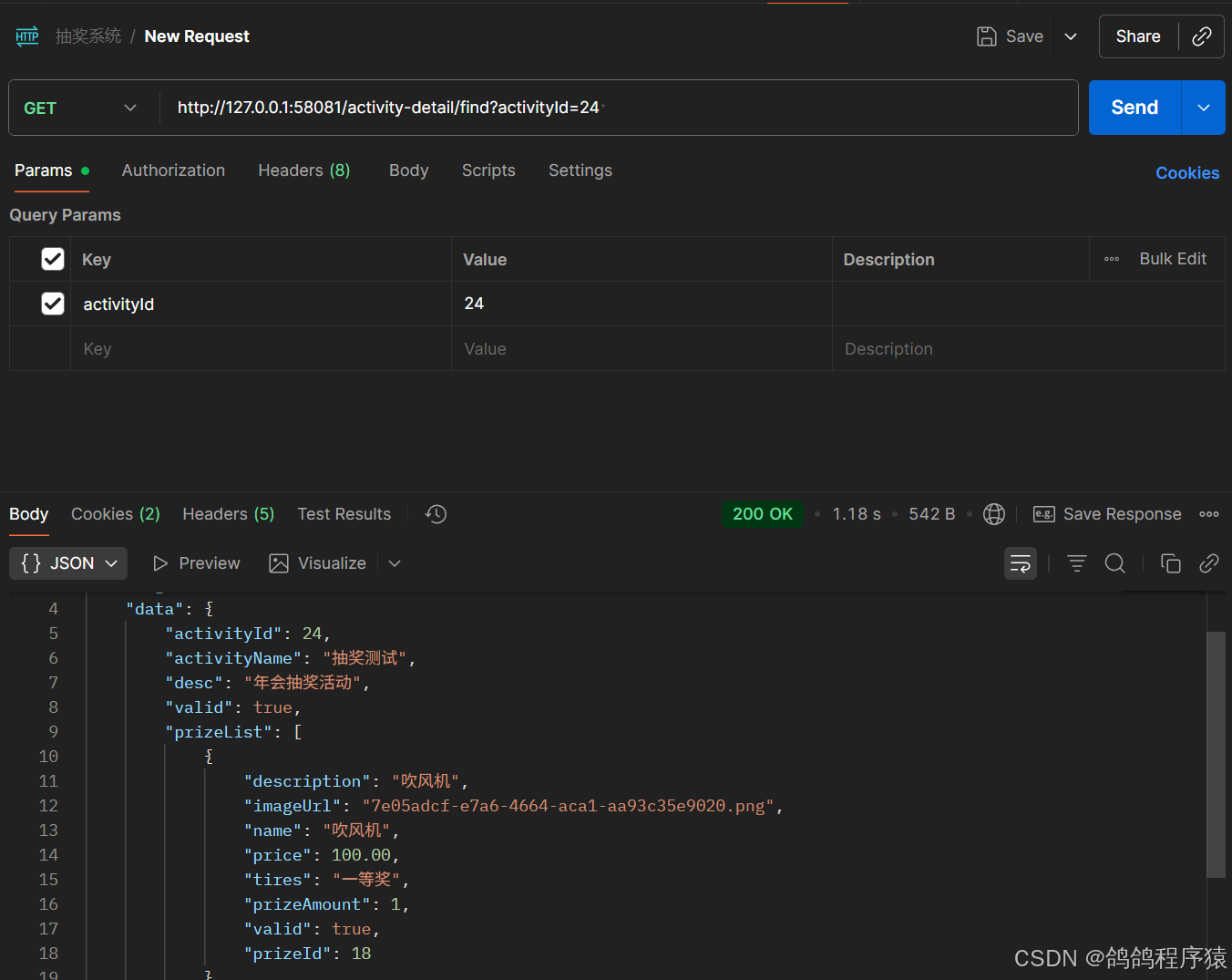 3.2. 请求提交:在活动进⾏时,管理员可发起抽奖请求。请求包含活动ID、奖品ID和中奖⼈员等附加