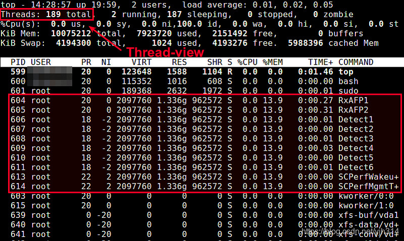 要让top输出某个特定进程<pid>并检查该进程内运行的线程状况: