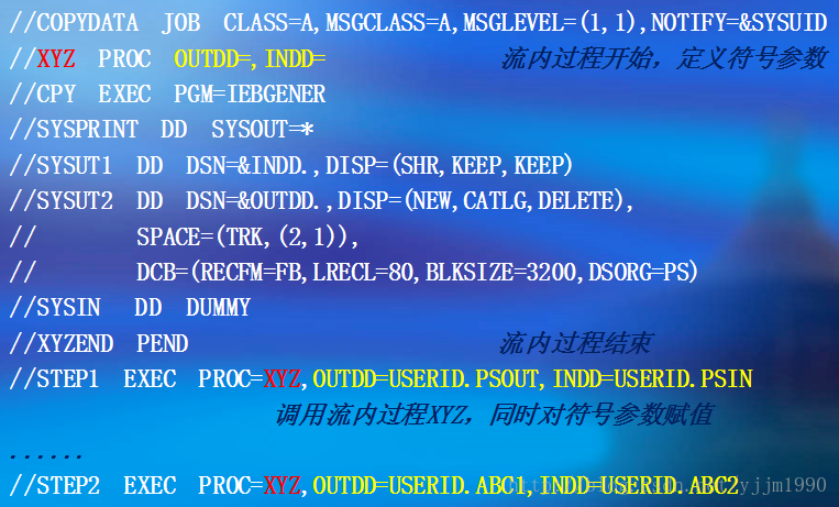 过程类似于其它语言里的子程序,它用JCL的语句进行编写,能够完成某种功能但不能被(SUB)执行,只能被作业调用。