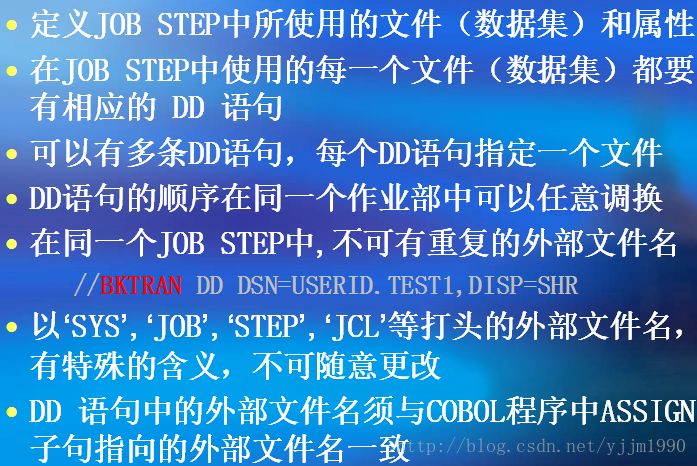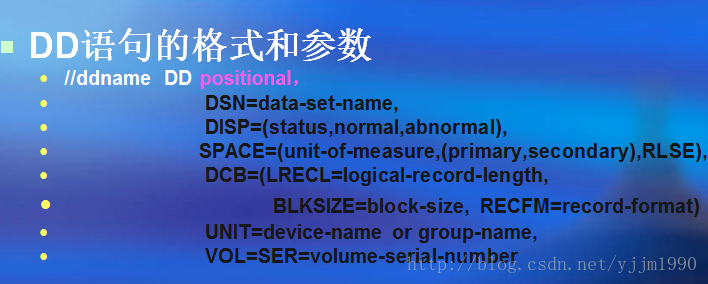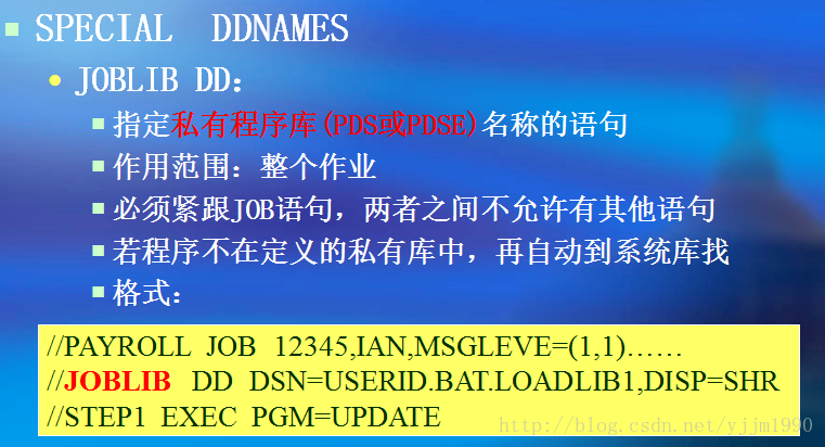 定义:job control language 用户与操作系统的接口,用户通过JCL语句按照自己的意图来控制作业的执行。