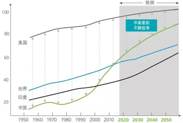 ▲全球城市化趋势(%)
