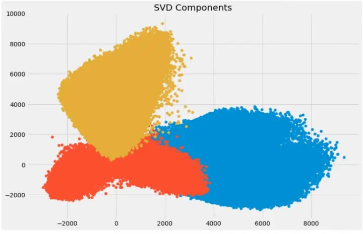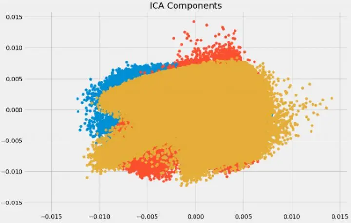 你可以在上面看到这些成分之间的相关性非常低。实际上,与我们之前使用SVD获得的成分相比,它们的相关性更小!