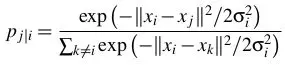 将数据点之间的高维欧氏距离被转换为表示相似性的条件概率: