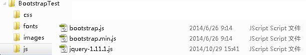 1.因为需要使用Bootstrap,所以先在官网(点击打开链接)下载组件即可,用于生产环境的Bootstrap版本(点击打开链接),Bootstrap3对2并不兼容,建议直接根据其开发文档使用Bootstrap3。本文也是根据Bootstrap3制作。同时,Bootstrap3所提供的JavaScript效果需要到jQuery1.11(点击打开链接)支持,可以到jQuery官网中下载兼容旧浏览器IE6的jQuery1.11(点击打开链接),而不是不兼容旧浏览器IE6的jQuery2。下载完之后,配置好站点目录。把Bootstrap3直接解压到站点目录,而把jquery-1.11.1.js放到js目录,也就是与bootstrap.js同一目录,站点文件夹的结构大致如下: