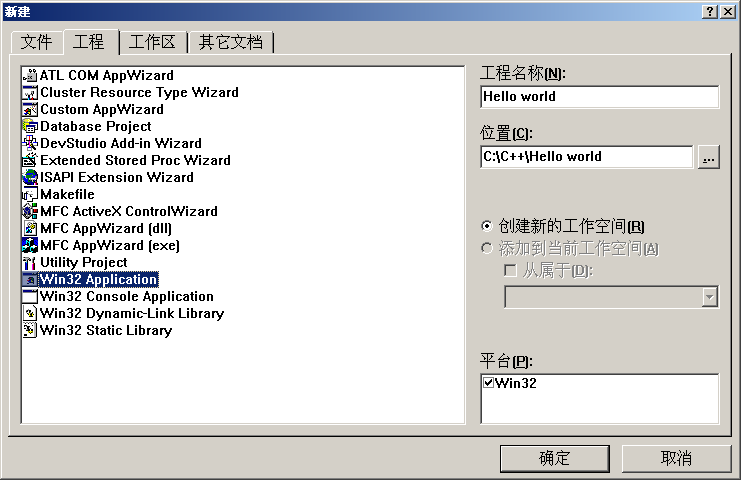 以下是VC6.0中经典的新建工程界面: