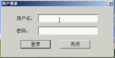 有如下的程序,输入用户名与密码,如果用户名为admin,密码为123456,那么则成功登录,切换到一个有“欢迎登录”与“关闭”按钮的对话框