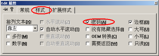 双击这个编辑框,在”样式“标签页勾选”密码“