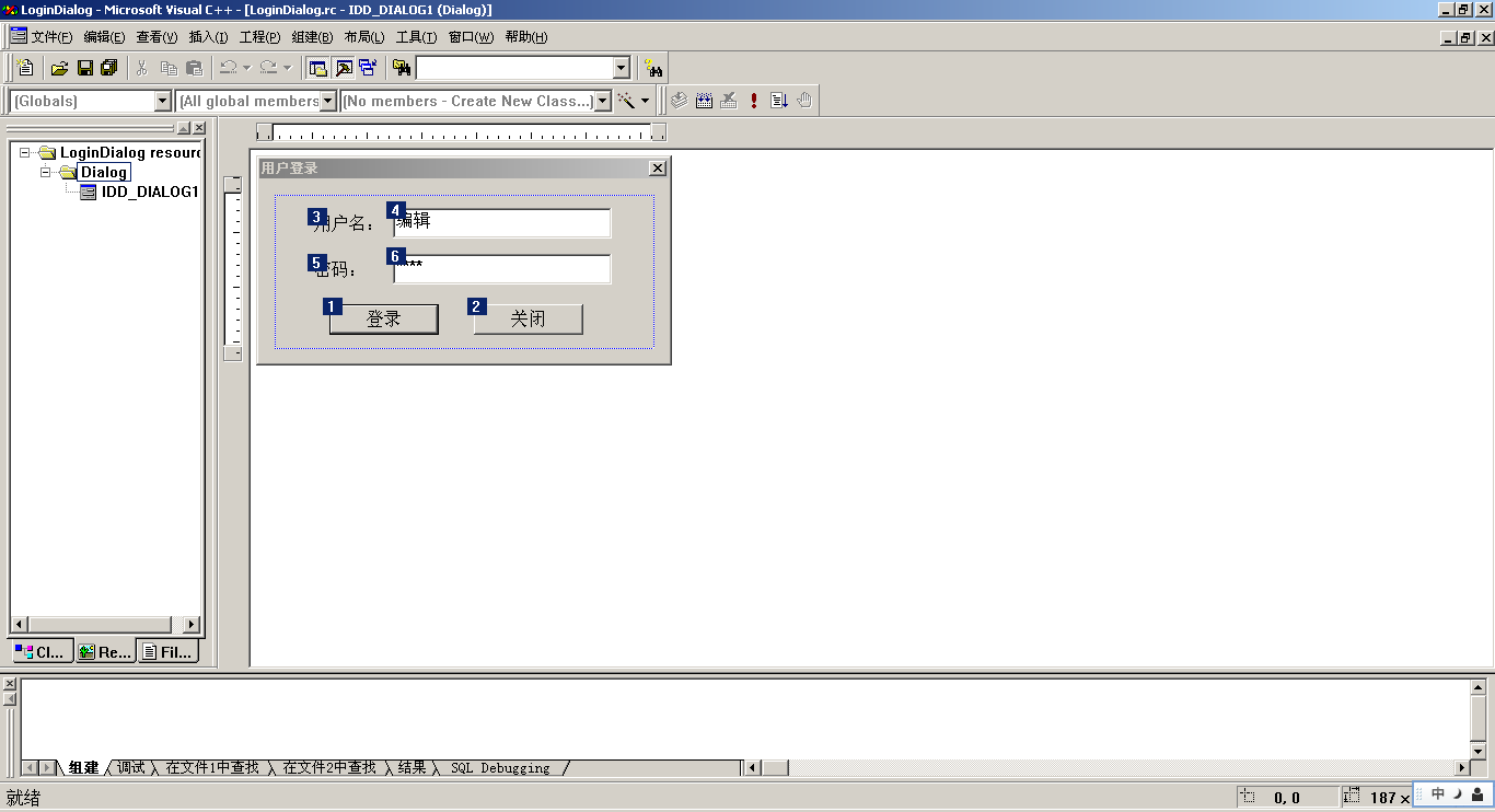 并且,为了一打开程序,光标就放在“用户名”旁边的编辑框,在放好控件位置之后,按CTRL+D,会出现如下的界面: