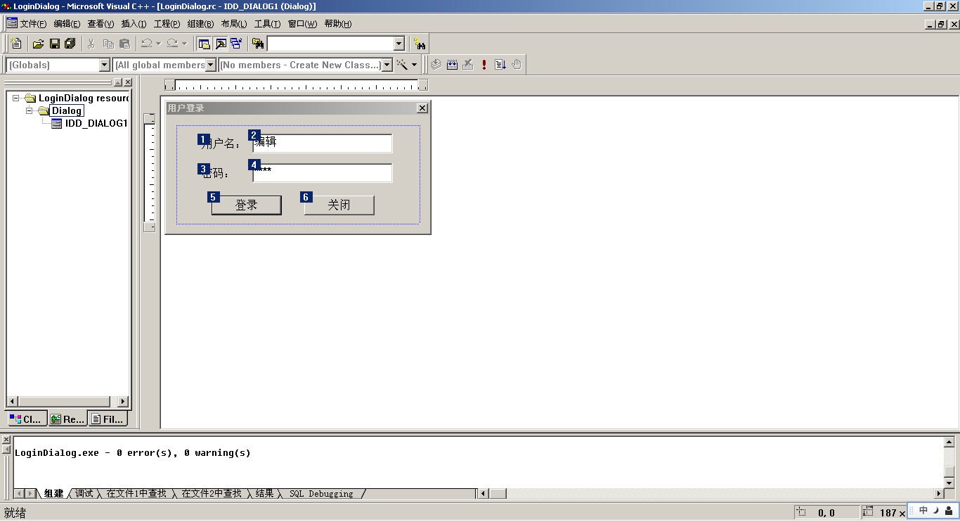 //如果输入的用户名与密码同时等于admin与123456,那么关闭这个对话框,并返回一个IDOK值,也就是1