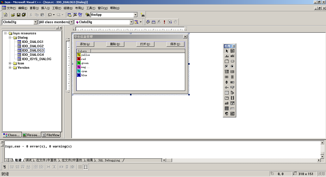 9、这样就做完了“添加”对话框,回到“学生信息管理”对话框中的“删除”按钮,其实这里的代码与《【mfc】学生信息管理,实现List控件节点的增删改查》(点击打开链接)一样,还不用遍历,随便删