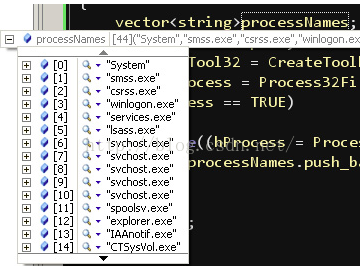 processNames.push_back(pe32.szExeFile);