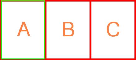 但是如果一直播放下去,那么我们播放到C区域时,红色区域再往左移动,那就会显示为空白。解决措施是又移回A区域,但是出现的问题又在于红色区域如果要移到A处,那应该右移动才能到达,但是我们要的是红色区域往左移动,因此就不能直接移回。那该怎么办呢?我想的解决措施就是把最前面的那个区域移动到最后的那个区域的右边。如果是刚才那种情况,那就让A接到C后方,这时候,A变成了最后一个。这时红色区域又往左移动时,取到的就是B,然后将B移动到A后面。