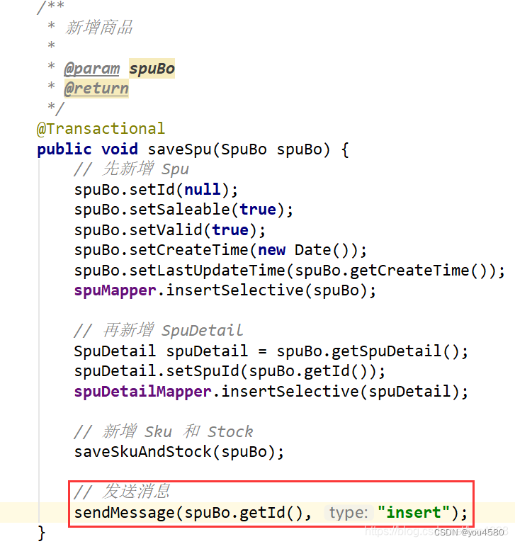 在新增方法中,调用发送消息方法