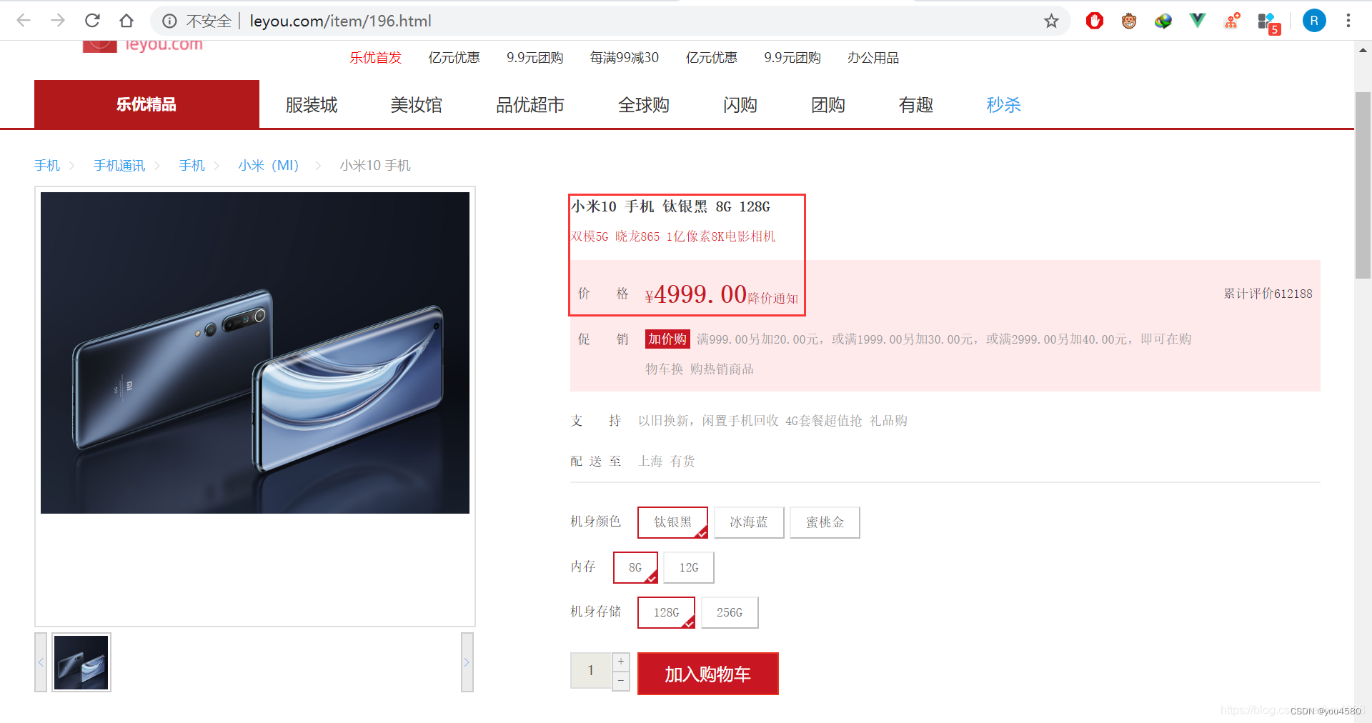 进入后台管理系统,修改商品价格为 4999
