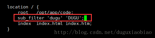 配置语法:sub_filter string(要替换的文本呢) string(要使用的文本)