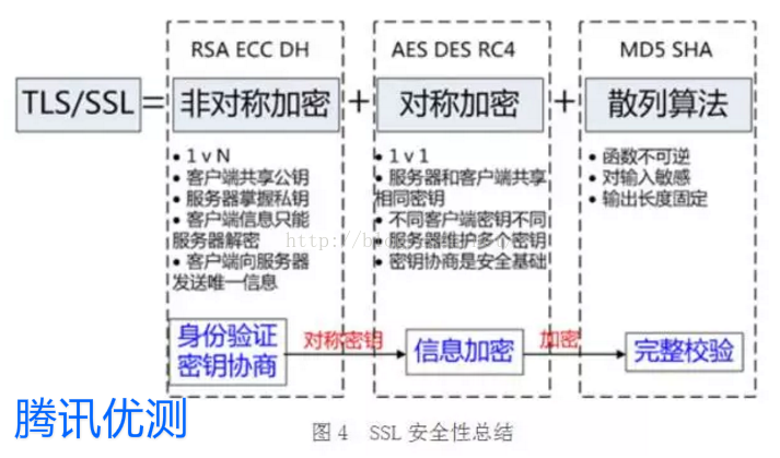 所以综合以上三点:非对称加密算法(公钥和私钥)交换对称密钥+数字证书验证身份(验证公钥是否是伪造的)+利用对称密钥加解密后续传输的数据=安全