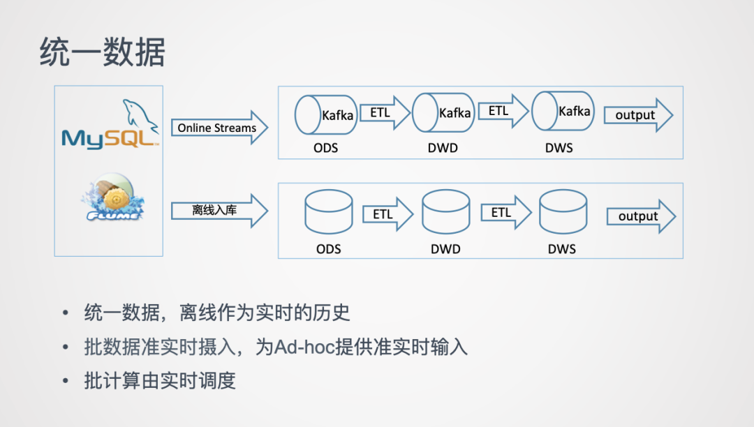 并且,通过实时链路可以加速离线链路的数据准备,批计算可以把调度换成流输入。