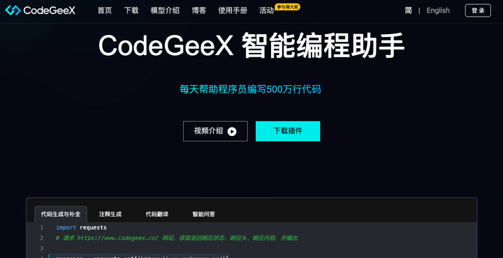 CodeGeeX是国内人工智能公司智谱AI开发的对标GitHub Copilot的免费AI编程工具,该工具基于其CodeGeeX2多语言代码生成模型,支持Python、Java、C++/C、JavaScript、Go等多种编程语言,可以实现代码的生成与补全、自动添加注释、代码翻译以及智能问答等功能,帮助开发者快速编写代码,提升开发效率。