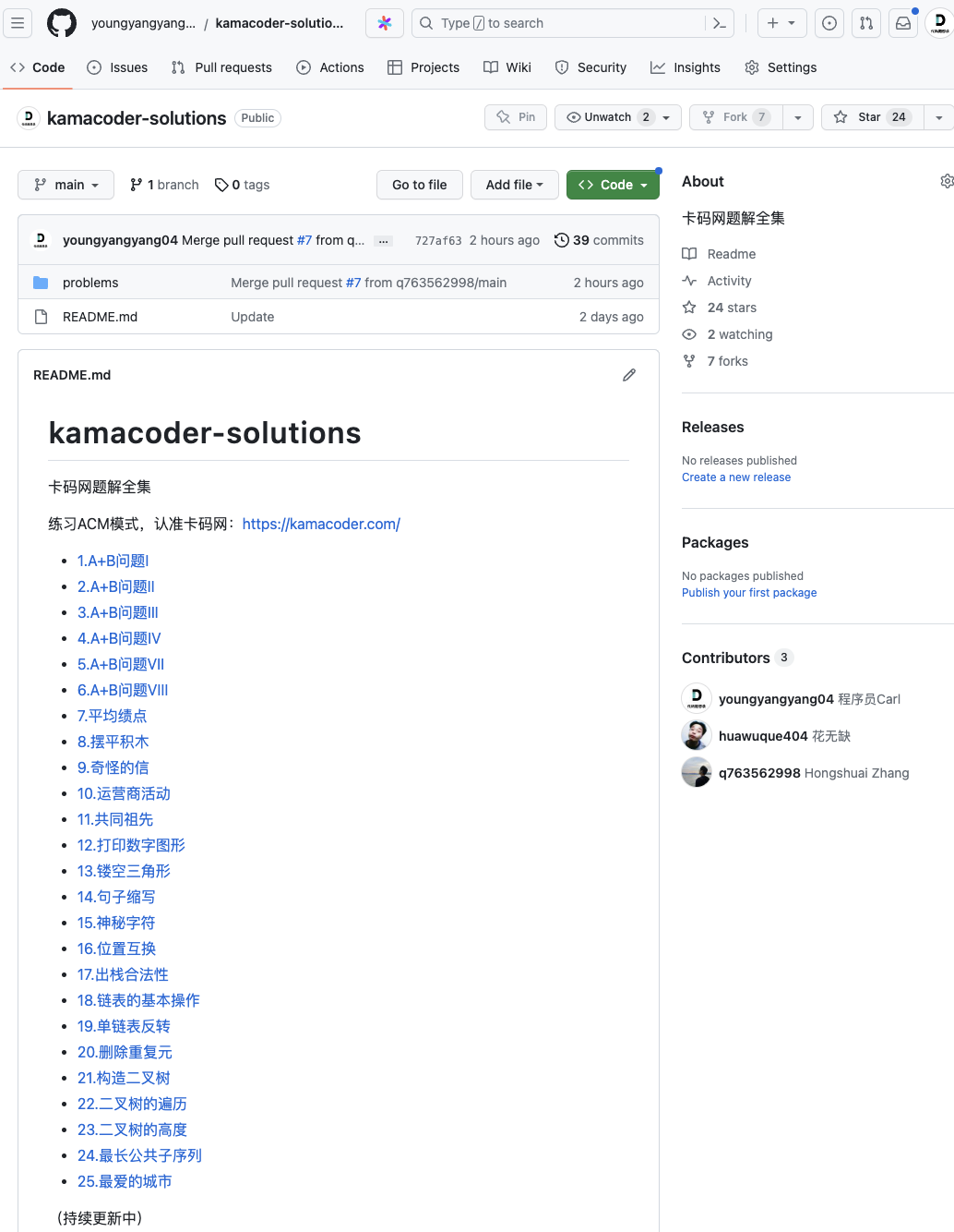 期待在Github(https://github.com/youngyangyang04/kamacoder-solutions) 的contributors上也出现你的头像。