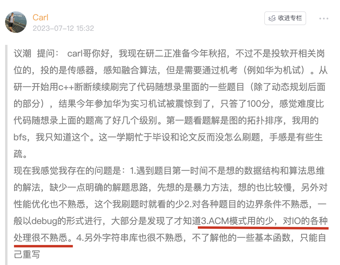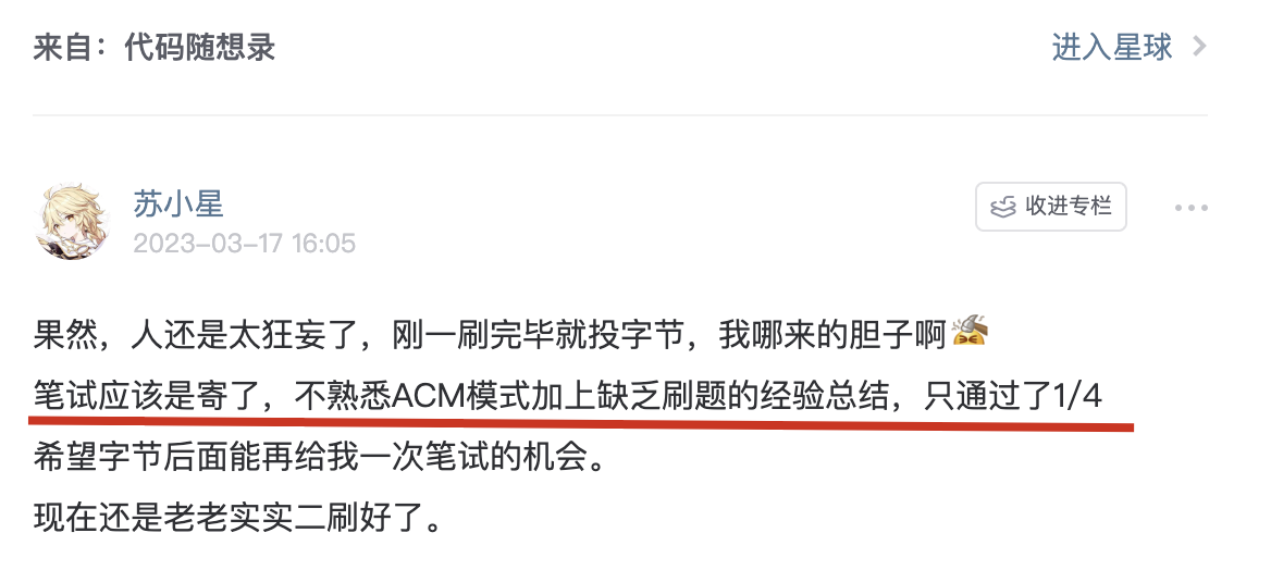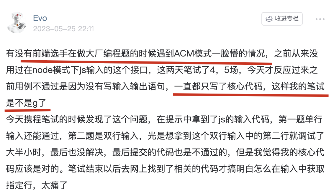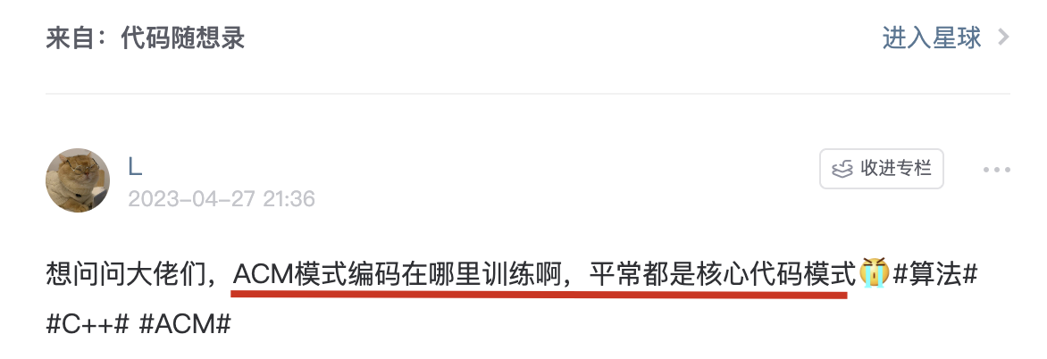 知识星球里很多录友的日常打卡中,都表示被 ACM模式折磨过: