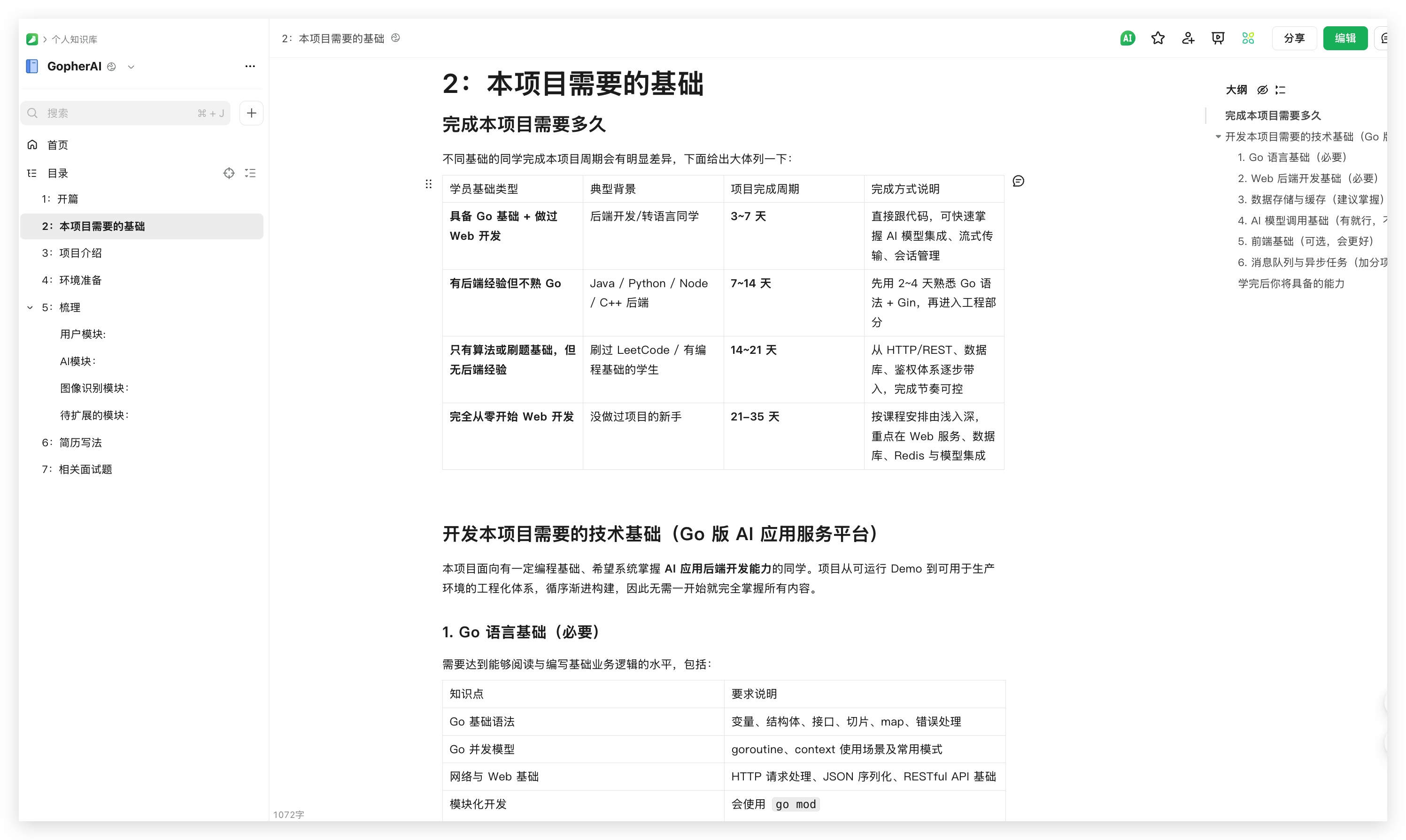 所以这次就安排上了,准备了很久、在星球内部正式推出的 Go 语言 AI 应用服务平台(GopherAI)。