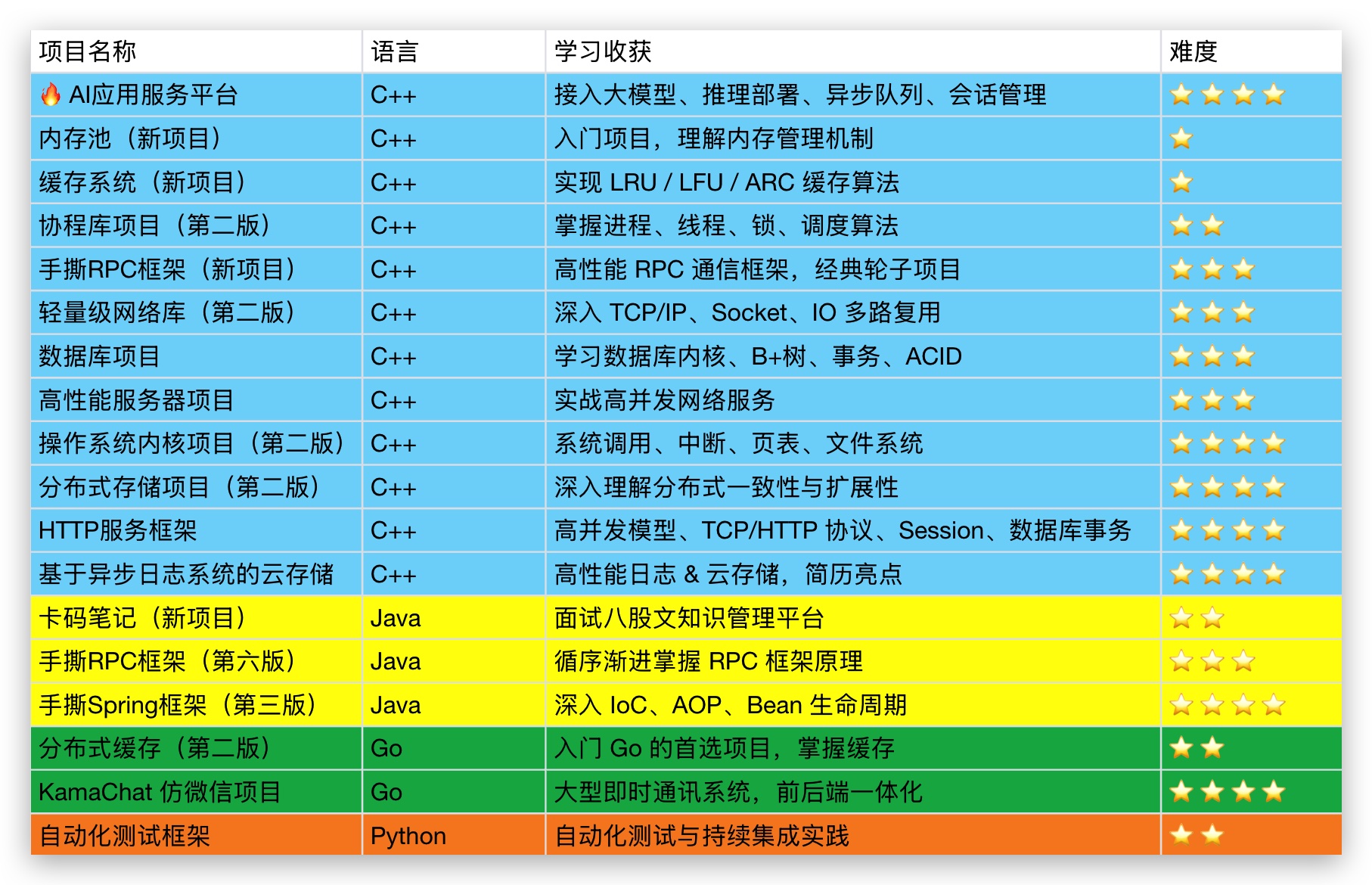 1、高质量项目合集(C++ / Java / Go / Python / AI)