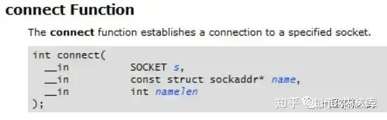 对于tcp套接字,我们需要调用套接字函数connect去建立TCP连接。我们先来看看微软MSDN上对套接字接口connect的描述: