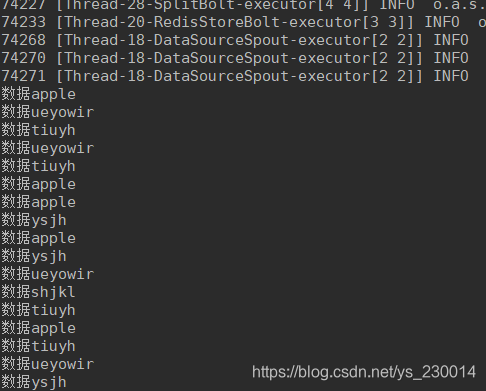 将之前的词频统计案例改编,将一个数组中的数据每隔1秒取出一个,通过Storm的Topology处理之后写入到Redis中