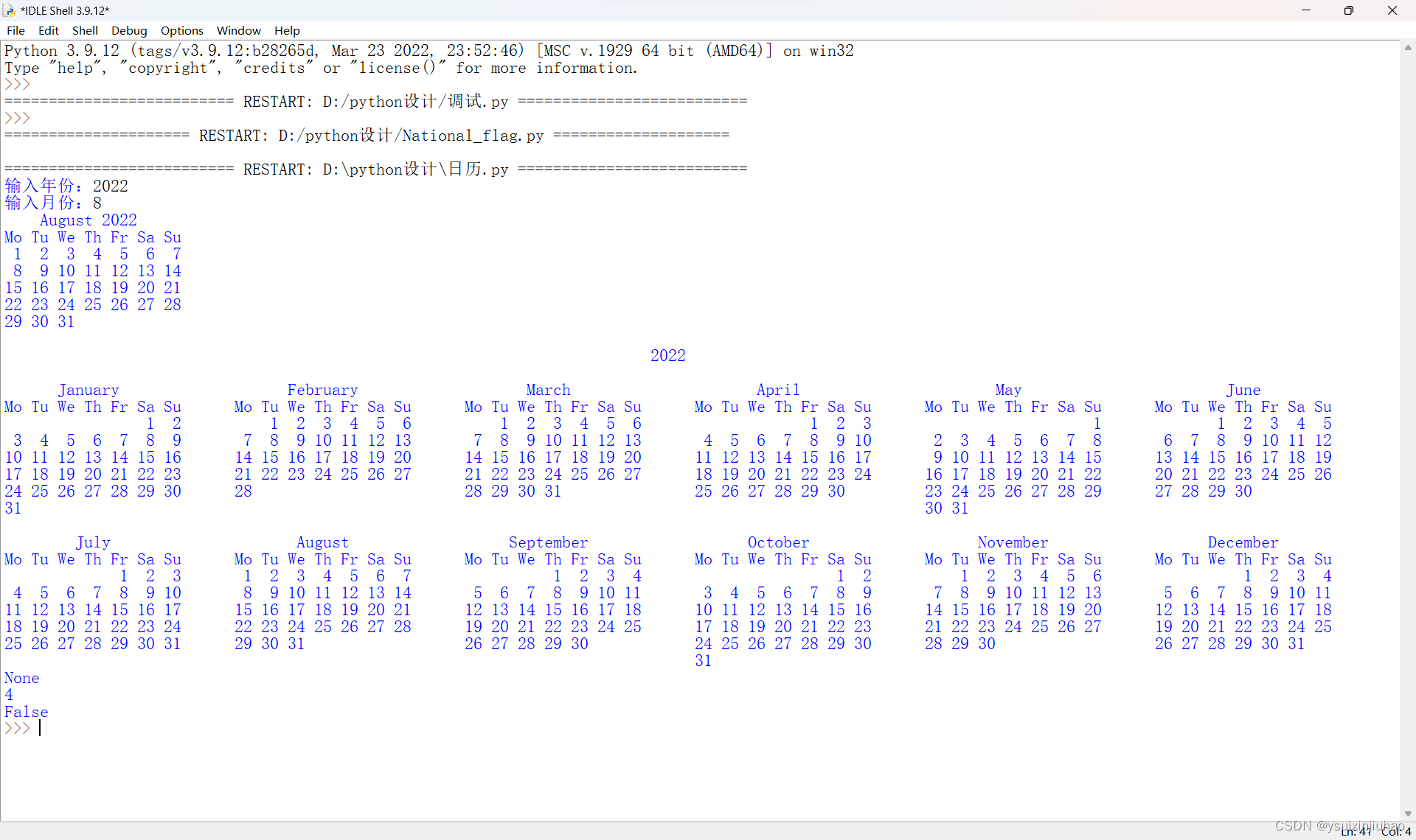 print(calendar.weekday(2022,9,9)) #给定某一天,判断是星期几