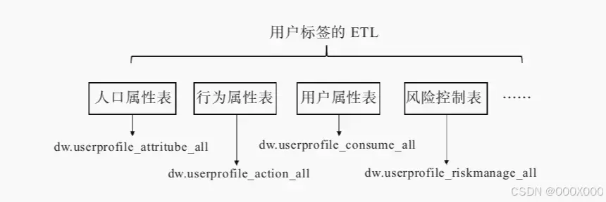如果将用户标签开发成一张大的宽表,在这张宽表下放几十种类型标签,那么每天该画像宽表的ETL作业将会花费很长时间,而且不便于向这张宽表中新增标签类型。