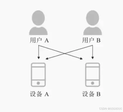 开发用户标签的时候,有项非常重要的内容——ID-MApping,即把用户不同来源的身份标识通过数据手段识别为同一个主体。用户的属性、行为相关数据分散在不同的数据来源中,通过ID-MApping能够把用户在不同场景下的行为串联起来,消除数据孤岛。下图展示了用户与设备间的多对多关系。