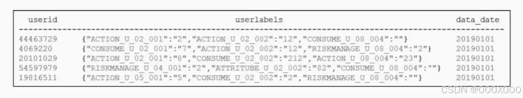 汇聚后用户标签的存储格式如图所示: