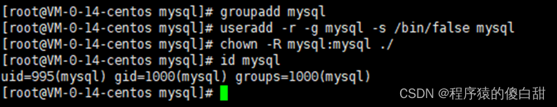 创建用户(-s /bin/false 参数指定mysql用户仅拥有所有权,而没有登录权限)